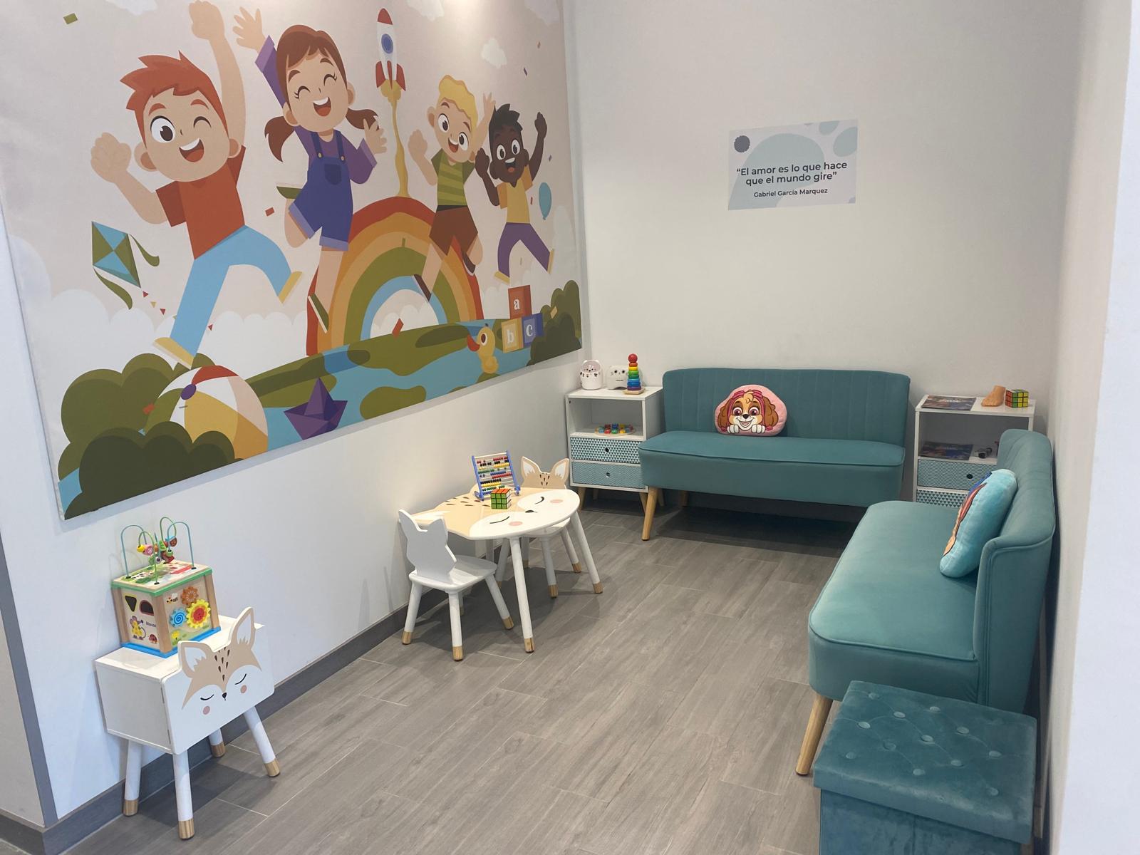• Sala de Espera Infantil: Equipada con colores frescos y divertidos, juegos de mesa y mobiliario adaptado para los más pequeños (1-4 años), para que la espera sea parte del juego.